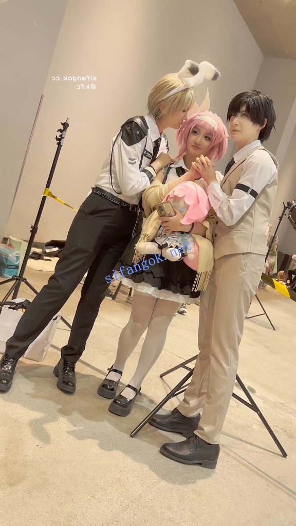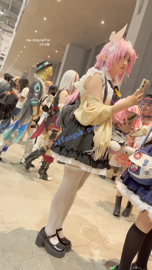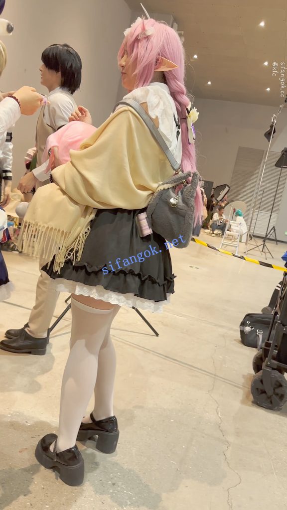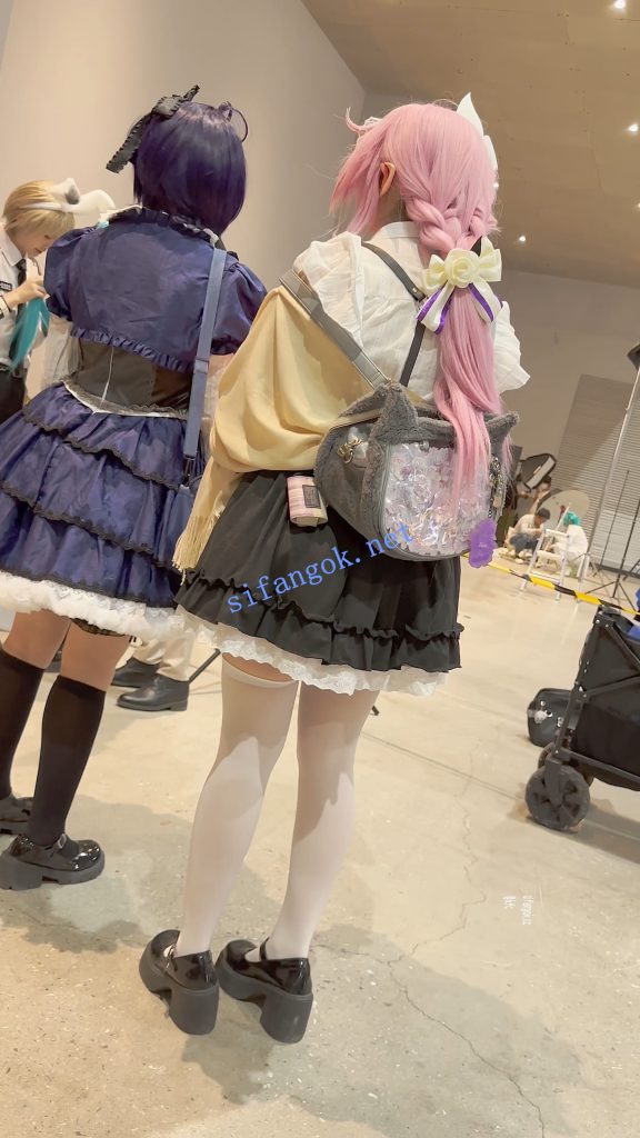 • 学生妹COSER逛街拍照·过膝白丝·翘屁股露出白色内内