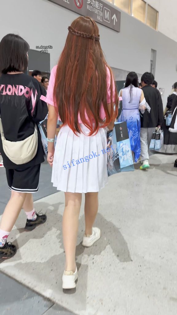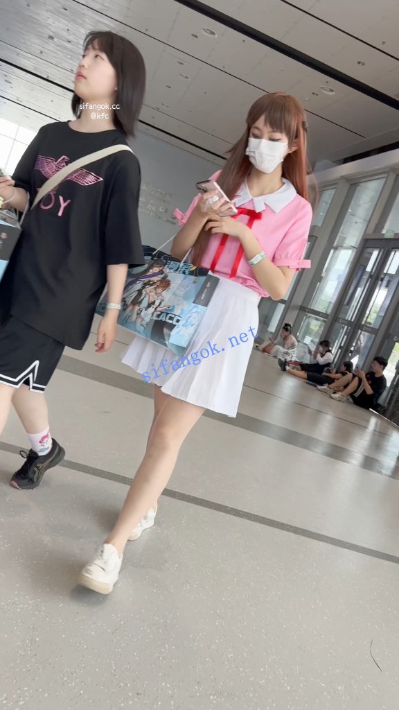 •  短裙学生妹和闺蜜逛街·身材高挑·肉色丝袜灰色窄内